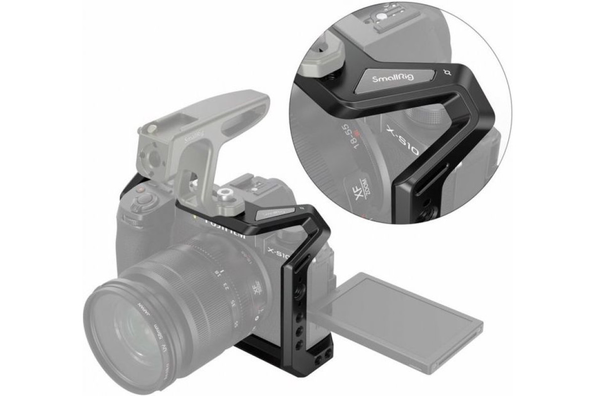Клетка SmallRig 3087 разработана специально для камеры Fujifilm X-S10. Клетка имеет полностью металлическую конструкцию, она прочно и надёжно фиксирует камеру и даёт множество опций крепления дополнительного оборудования и аксессуаров благодаря большому количеству отверстий для винтов, площадке Arca Swiss, холодному башмаку, NATO рельсе. Ключ для крепления клетки в комплекте.