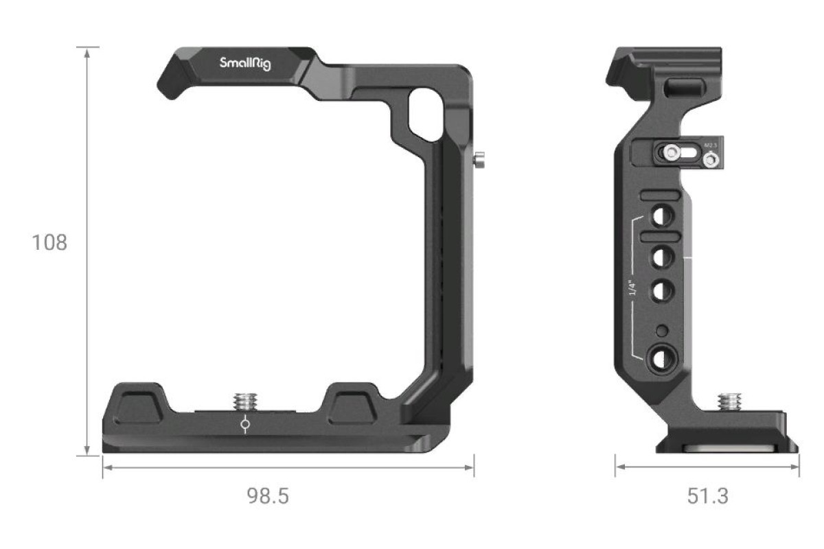 Несколько типов крепления - отверстия с резьбой ¼”, ⅜”, ARRI ⅜” и разъем «холодный башмак» дают возможность установить на клетку необходимые аксессуары. Например, верхнюю ручки SmallRig 2165С, боковую ручку SmallRig HSN2093C, держатель монитора SmallRig 2903, внешний микрофон SmallRig 3468 или светодиодный осветитель SmallRig 3290.