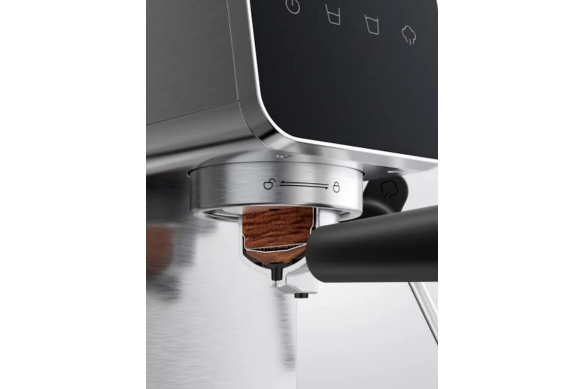 Стильная и мощная кофемашина с давлением 20 бар, обеспечивающая идеальную экстракцию эспрессо с насыщенным вкусом и бархатистой пенкой. Оснащена удобной сенсорной панелью управления и ручным капучинатором для создания воздушной молочной пены. Съемный 0,9-литровый контейнер упрощает эксплуатацию, а компактный дизайн делает её идеальным выбором для дома и офиса.