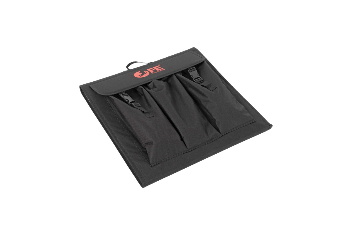 Снаружи фотобокса расположены три кармана, в которых помещается весь комплект. В собранном виде комплект выглядит как портфель с ручкой и весит всего 3 кг.