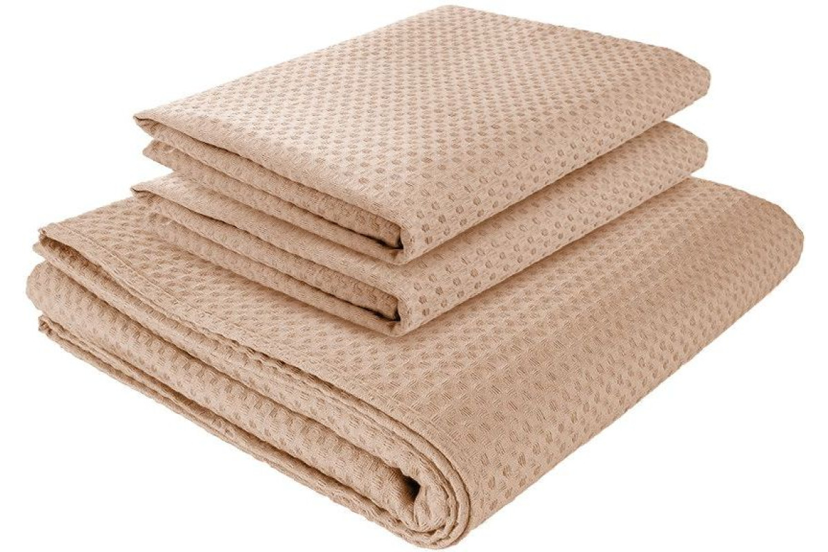 Вафельные полотенца изготовлены из натурального экологически чистого хлопка, особое плетение нитей ткани создает объемную клетку и позволяет хорошо впитывать влагу. Вафельное полотно плотностью 250 г/кв.м.