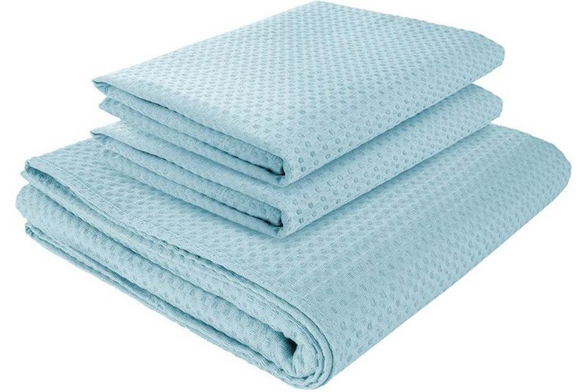 Вафельные полотенца изготовлены из натурального экологически чистого хлопка, особое плетение нитей ткани создает объемную клетку и позволяет хорошо впитывать влагу. Вафельное полотно плотностью 250 г/кв.м.