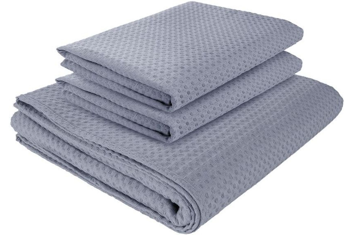 Вафельные полотенца изготовлены из натурального экологически чистого хлопка, особое плетение нитей ткани создает объемную клетку и позволяет хорошо впитывать влагу. Вафельное полотно плотностью 250 г/кв.м.