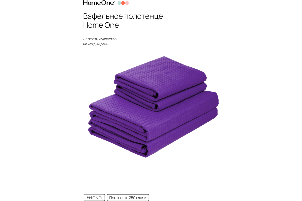 Комплект полотенец вафельных Home One 45х70 (2шт), 80х150 (2шт), баклажан