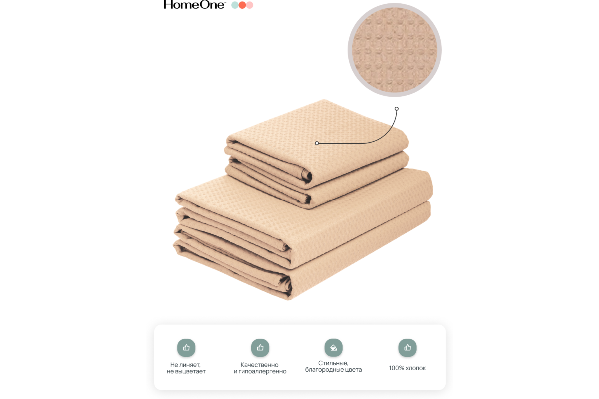 Вафельные полотенца изготовлены из натурального экологически чистого хлопка, особое плетение нитей ткани создает объемную клетку и позволяет хорошо впитывать влагу. Вафельное полотно плотностью 250 г/кв.м.