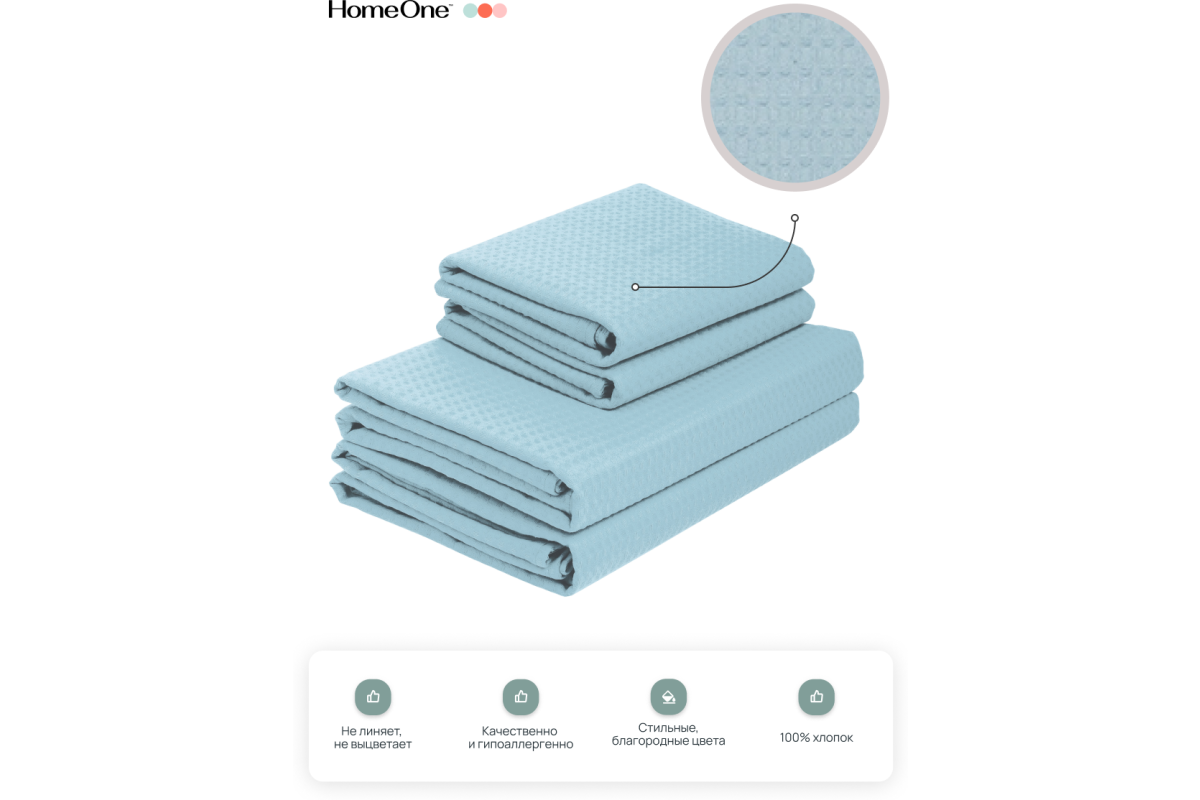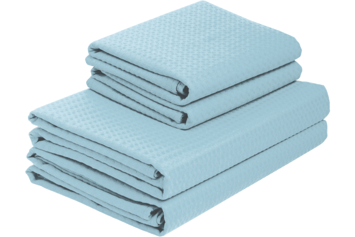 Вафельные полотенца изготовлены из натурального экологически чистого хлопка, особое плетение нитей ткани создает объемную клетку и позволяет хорошо впитывать влагу. Вафельное полотно плотностью 250 г/кв.м.