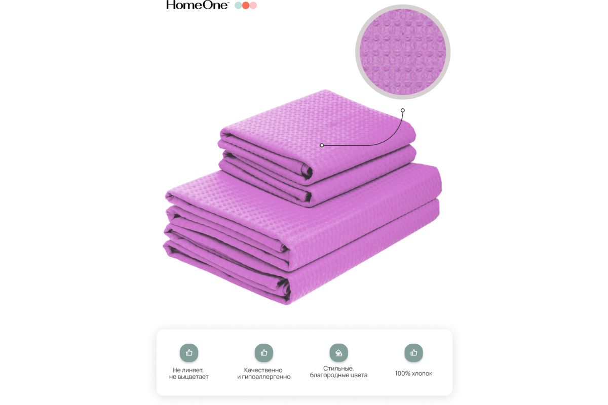 Комплект полотенец вафельных Home One 45х70 (2шт), 80х150 (2шт), сирень