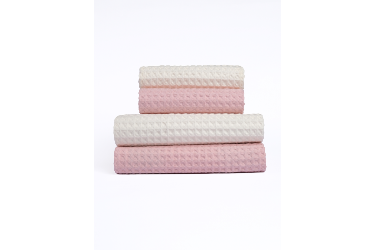 Комплект полотенец вафельных Home One 50х90 (2шт), 70х140 (2шт) пыльная роза, молочный