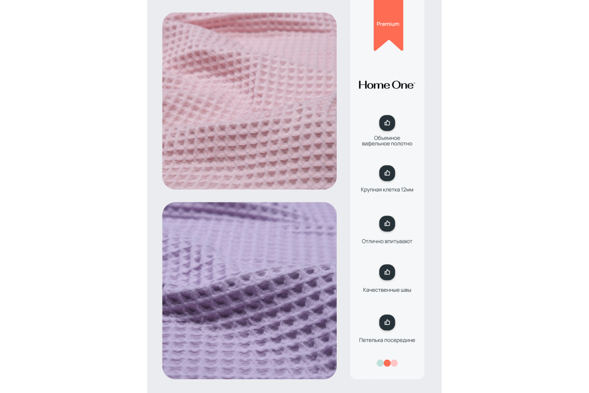 Комплект полотенец вафельных Home One 70х140 (2шт) пыльная роза, лаванда