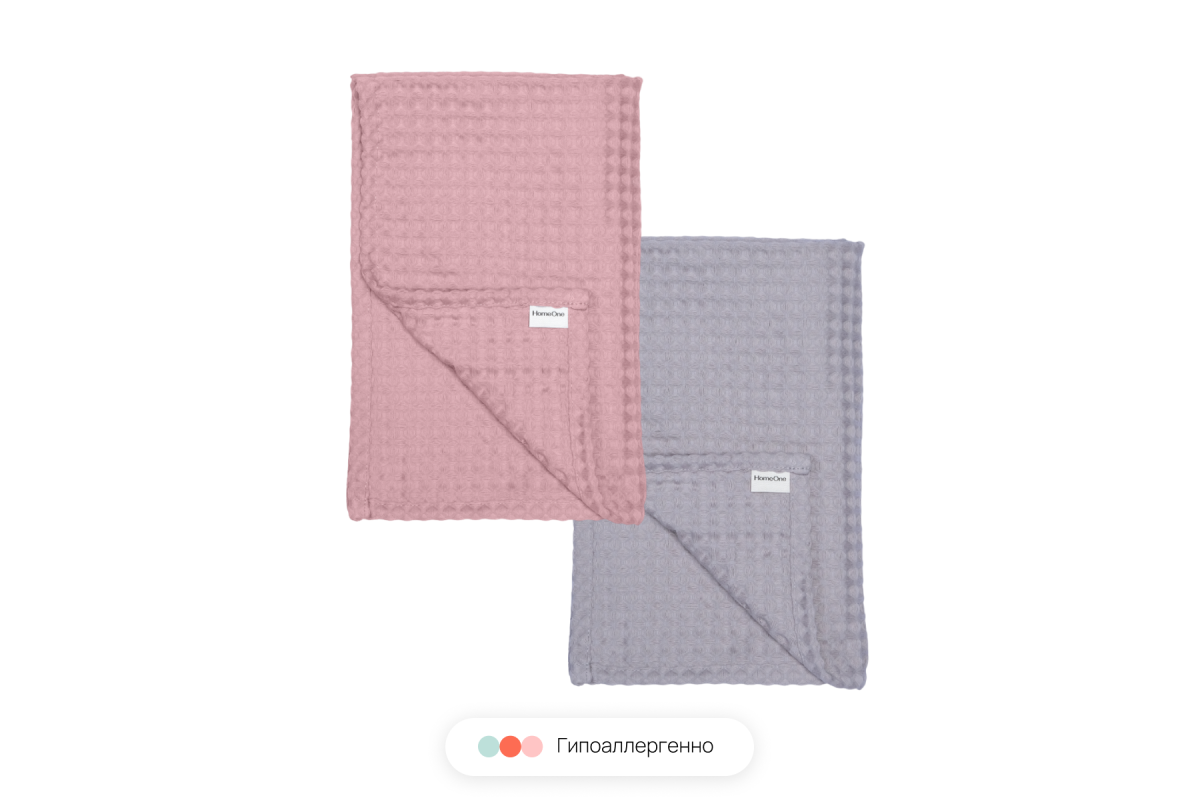 Комплект полотенец вафельных Home One 70х140 (2шт) пыльная роза, светло-серый