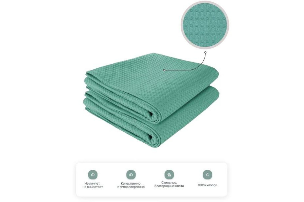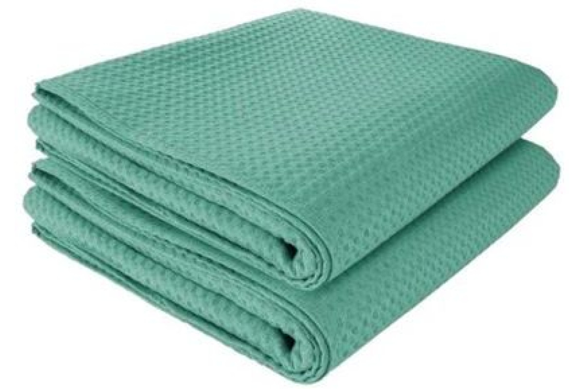 Вафельные полотенца изготовлены из натурального экологически чистого хлопка, особое плетение нитей ткани создает объемную клетку и позволяет хорошо впитывать влагу. Вафельное полотно плотностью 250 г/кв.м.