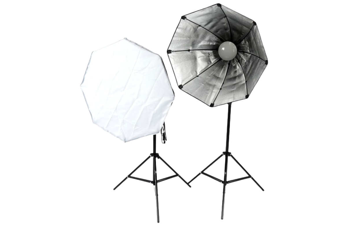 Комплект постоянного света с двумя светодиодными лампами по 50 Вт. Максимальная высота стоек 210 см, диаметр октобокса 60 см, в комплекте сумка для хранения и транспортировки.