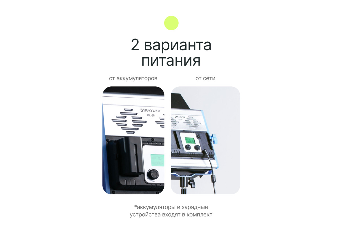 Две LED панели обеспечивают мягкий световой поток с высоким индексом цветопередачи — CR>95. Цвета в кадре выглядят максимально реалистично.