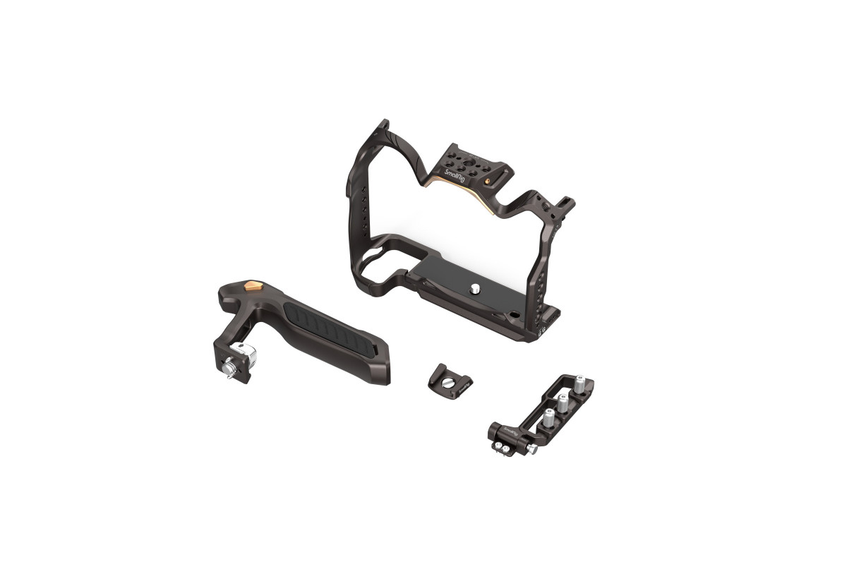 Набор SmallRig 4317 Night Eagle включает в себя клетку для Nikon Z8, верхнюю рукоятку и фиксатор для HDMI / USB кабелей. Все аксессуары выполнены в необычном дизайне с выразительным изгибами корпуса, акцентами красного и бронзового цвета и отделкой рукояти из натуральной кожи. Клетка обеспечивает свободный доступ ко всем интерфейсам и органам управления, будучи при этом максимально легкой и компактной. Она позволяет установить на камеру дополнительные аксессуары: верхние и боковые ручки, мониторы, микрофоны, внешние аккумуляторы, фиксаторы для USB и HDMI кабеля и так далее. По периметру клетки сделаны резьбовые гнезда 1/4", сверху под углом расположен холодный башмак (съемный) и гнездо ARRI 3/8", слева – планка НАТО. Нижняя пластина выполнена в форме ласточкиного хвоста стандарта Arca Swiss, что позволяет устанавливать камеру на совместимые штативы и стабилизаторы максимально быстро и просто.