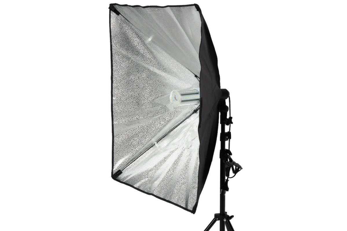 Студийный осветитель LH-E27х1 с керамическим патроном и светодиодными лампами ML-25 FL LED выдает световой поток (линейный спектр) с мощностью 25 Вт, цветовой температурой 5500 К и цветопередачей CRI>98. По поверхности лампы вытянутой формы типа Corn равномерно распределены 90 сверхъярких светодиодов, что позволяет полностью заполнить софтбокс светом и получить на выходе из рассеивателя мягкий световой поток без потери мощности.
