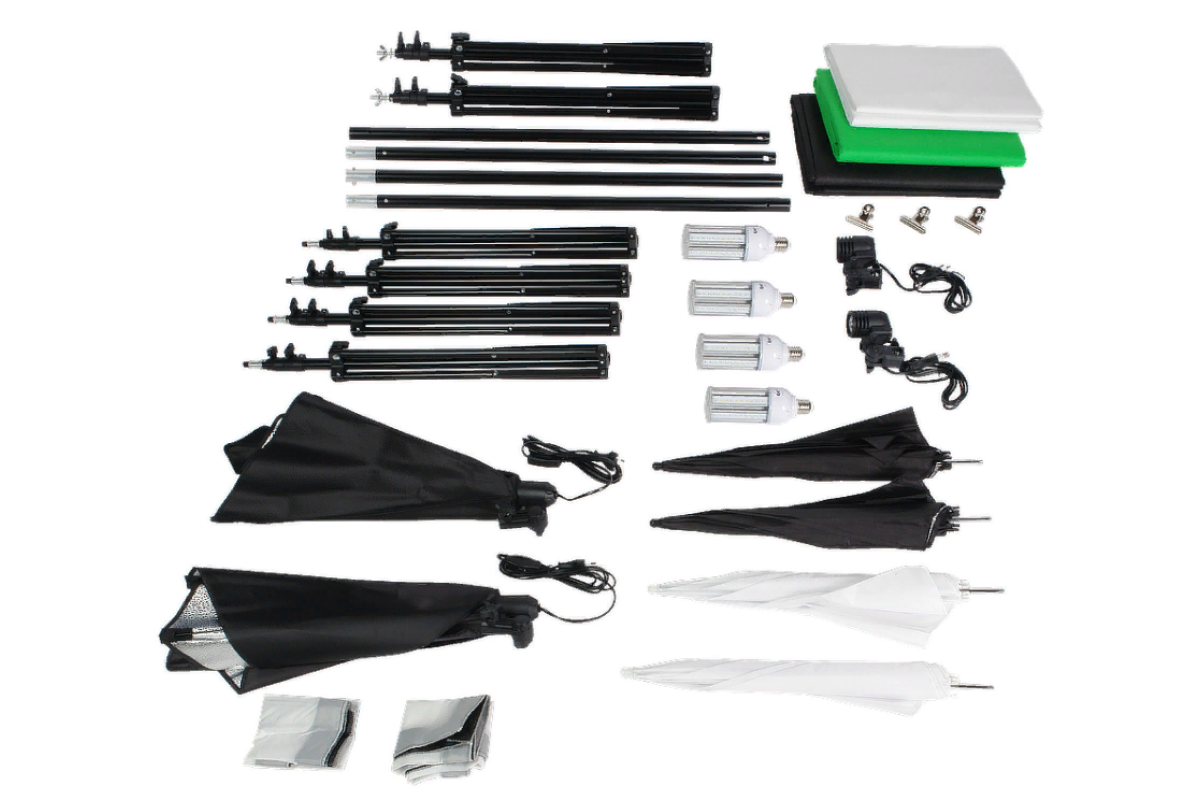 чехол, фон, светодиодные лампы, стойки, перекладина, светорассеиватель, софтбоксы, патрон для зонта, сумка, фотозонт UR-32