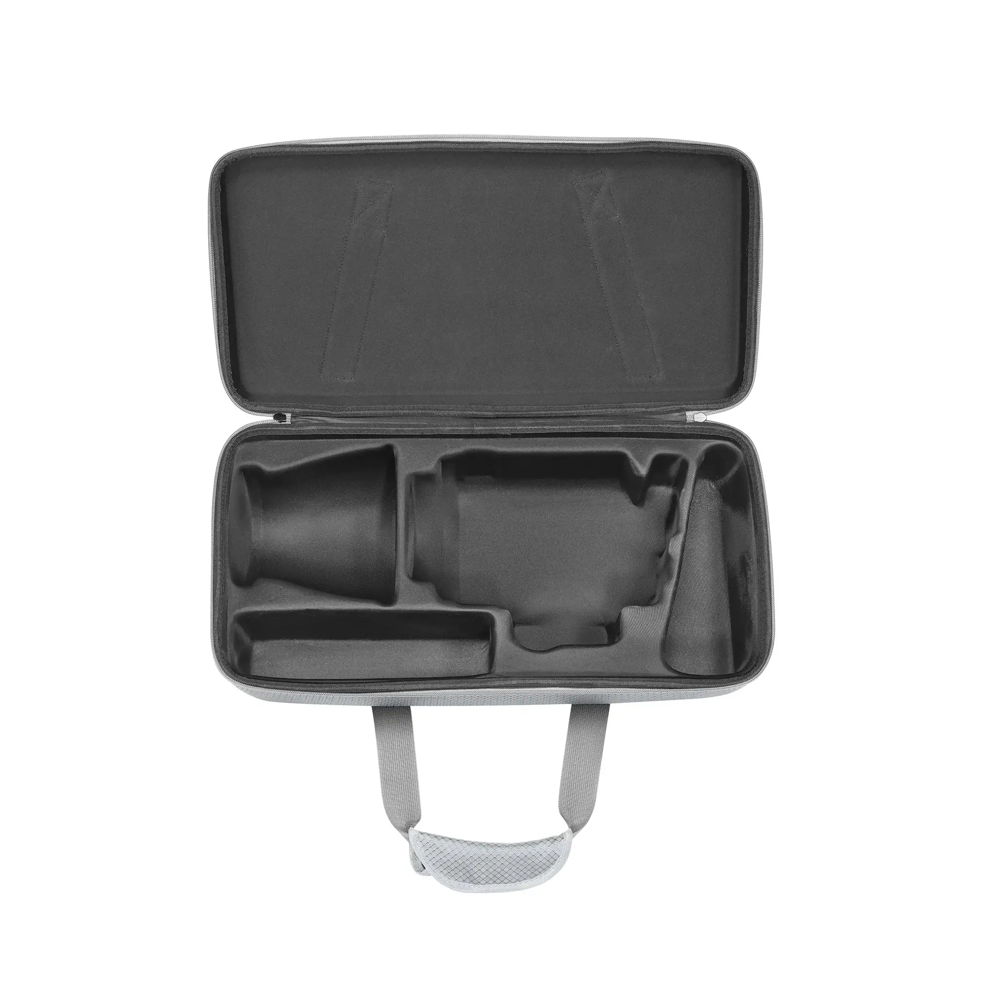 Осветитель поставляется в жесткой сумке, предназначенной для удобной транспортировки и безопасного хранения устройства вместе с аксессуарами. Внутри предусмотрены специальные ячейки, обеспечивающие надежную фиксацию оборудования во время выездных съемок. Боковые ремни удобно объединяются с помощью застежки-липучки, что облегчает перенос сумки.