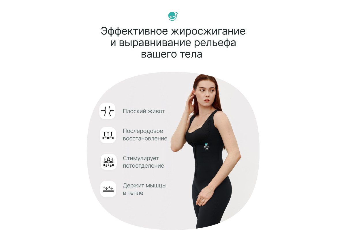 Костюм-сауна для похудения CleverCare отлично подходит в качестве спортивной одежды (или в дополнение к ней) для занятий в зале, дома и на улице, ускоряя процесс похудения за счет эффекта сауны и плотного прилегания, усиливая результат от спорта и диеты. Обеспечивает сжигание подкожного жира, помогает создать тело своей мечты. Мягкий гипоаллергенный материл гарантирует комфорт и безопасность во время занятий, а плотное прилегание делает его практически неощутимым. Тепло, аккумулируемое Вашим телом, надежно сохраняется под костюмом, что позволяет заниматься на улице даже в холодное время года. Фитнес-костюм не сковывает движений и не доставляют дискомфорта при контакте с телом. Рекомендована ручная стирка в холодной воде (до 40 градусов) после каждого использования. CleverCare - feel your beauty!