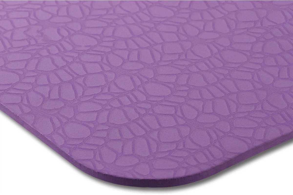 Коврик из TPE очень приятен на ощупь, эластичен, хорошо сохраняет форму и в жару, и на холоде Он не выгорает на солнце, не взаимодействует с потом во время практики и с мылом во время стирки Устойчив к распространению бактерий и грибков Коврики из TPE мягче и гораздо легче, чем из ПВХ.