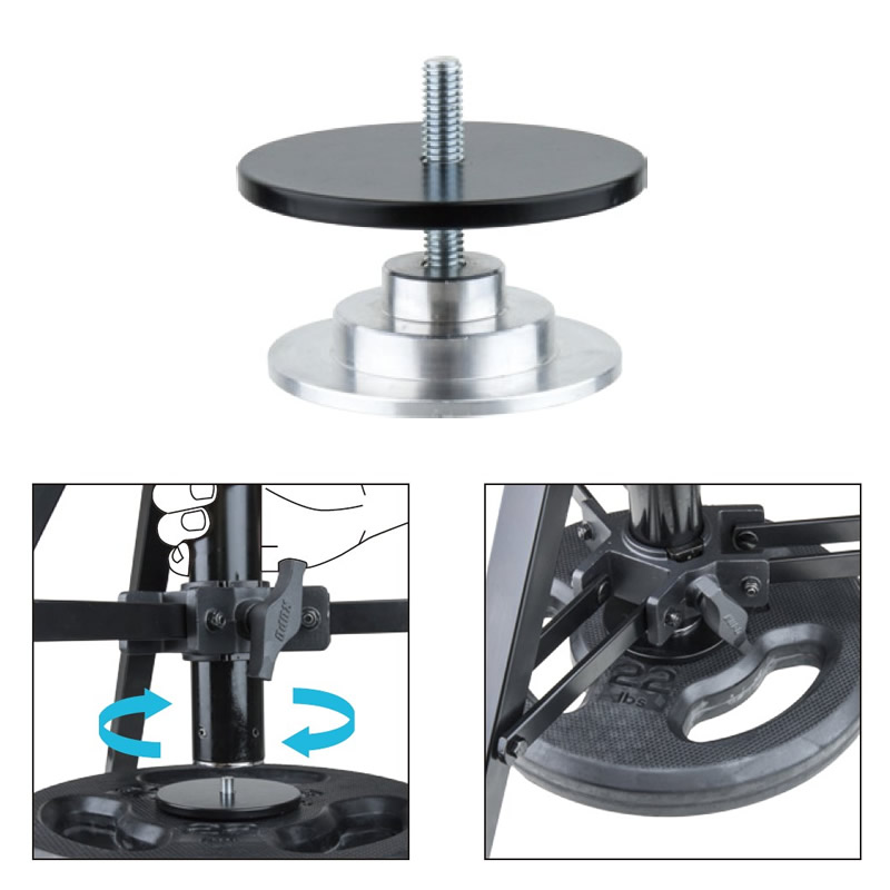 Рабочая высота от 97,5 до 165 см, 3 ножки для выравнивания положения на неровных поверхностях.
