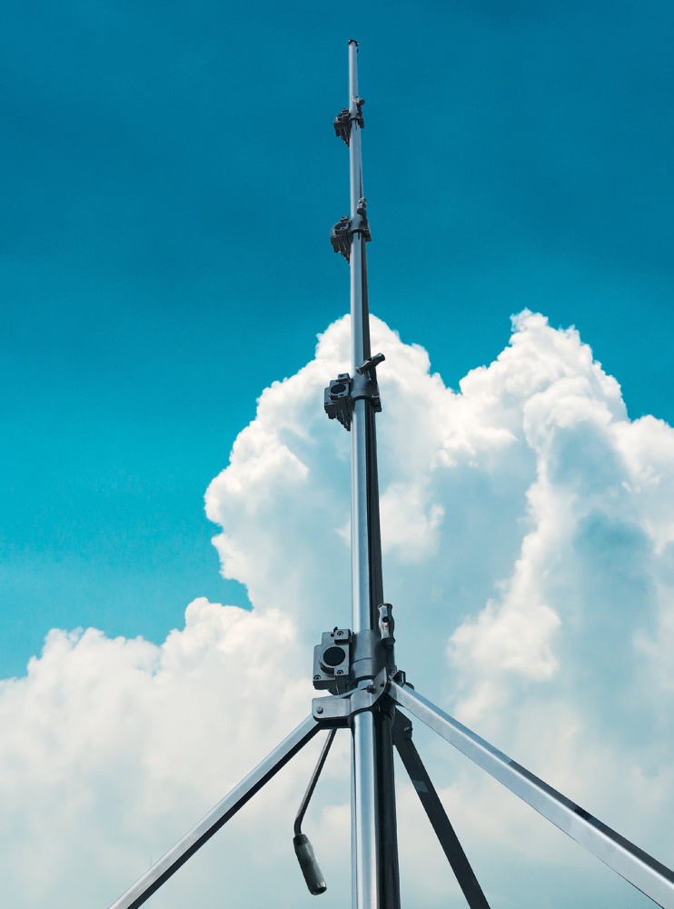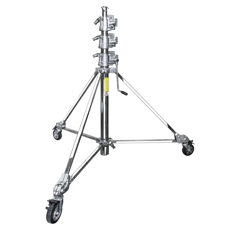 4-секционная стойка спрямым приводным механизмом и механизмом автоматической блокировки на базе с колёсами для безопасной работы с тяжёлым оборудованием на большой высоте.