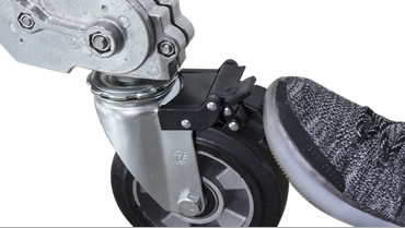 Съемная храповая рукоятка, маркировка ограничения выдвижения на секциях, двойная рукоять на крестовине для удобства складывания/раскладывания основания. Уникальная конструкция удерживает колёса для комфортного перемещения стойки, когда её основание сложено.
