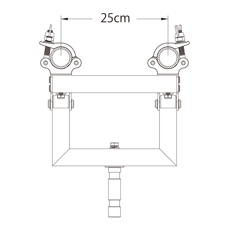 хомуты из высокопрочного алюминиевого сплава 6061-T6 на раме с поворотным держателем и наружным штифтом диаметром 28 мм с возможностью наклона для удобства монтажа фермы (лестничной, треугольной или квадратной).