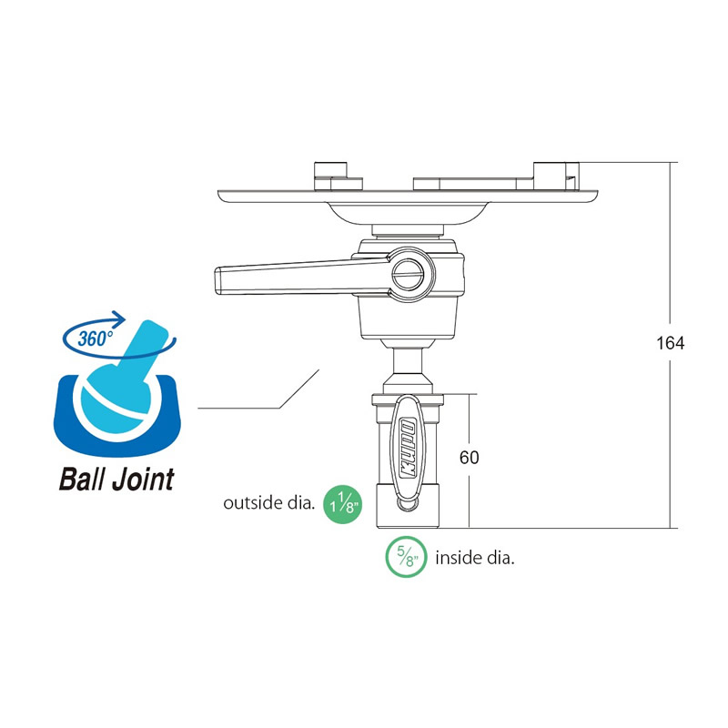 Держатель на шаровой головке позволяет установить проектор на любую стойку со стандартным штифтом 5/8" (16 мм) или приемным гнездом 9/8" (28 мм).