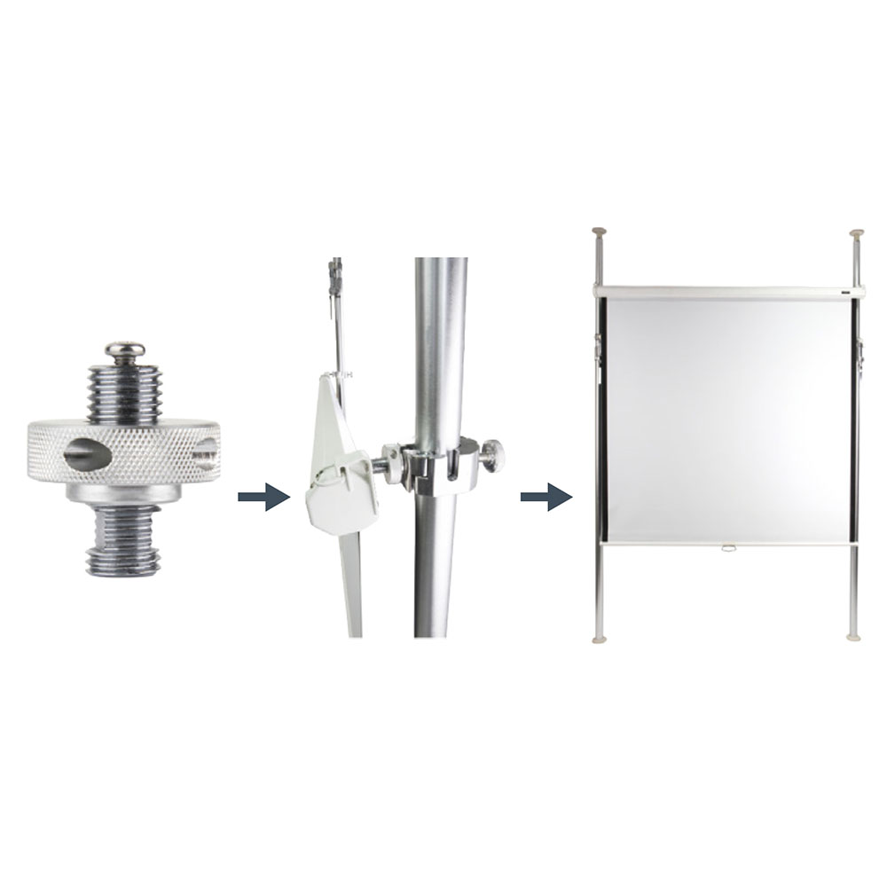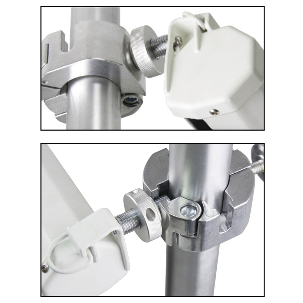 Держатель для экрана KUPOLE - это отличное приспособление, позволяющее без особых усилий повесить экран видеопроектора на автополы или штанги диаметром от 25 до 50 мм*.