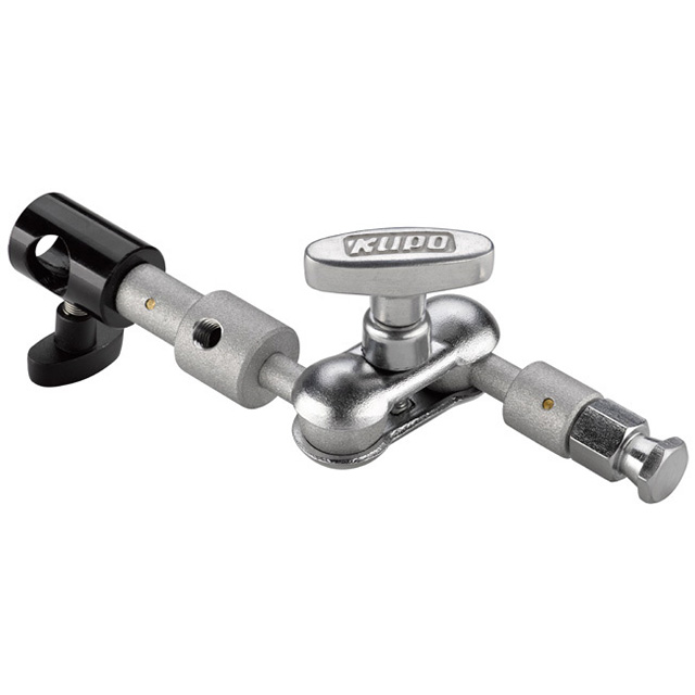 Удлинительный мини-кронштейн с 5/8”приёмной крепёжной втулкой baby receiver и шестигранным штифтом с другой стороны для установки на зажим Convi clamp. Локтевое соединение с двумя шарами даёт возможность установки обеих сторон кронштейна в любом направлении.