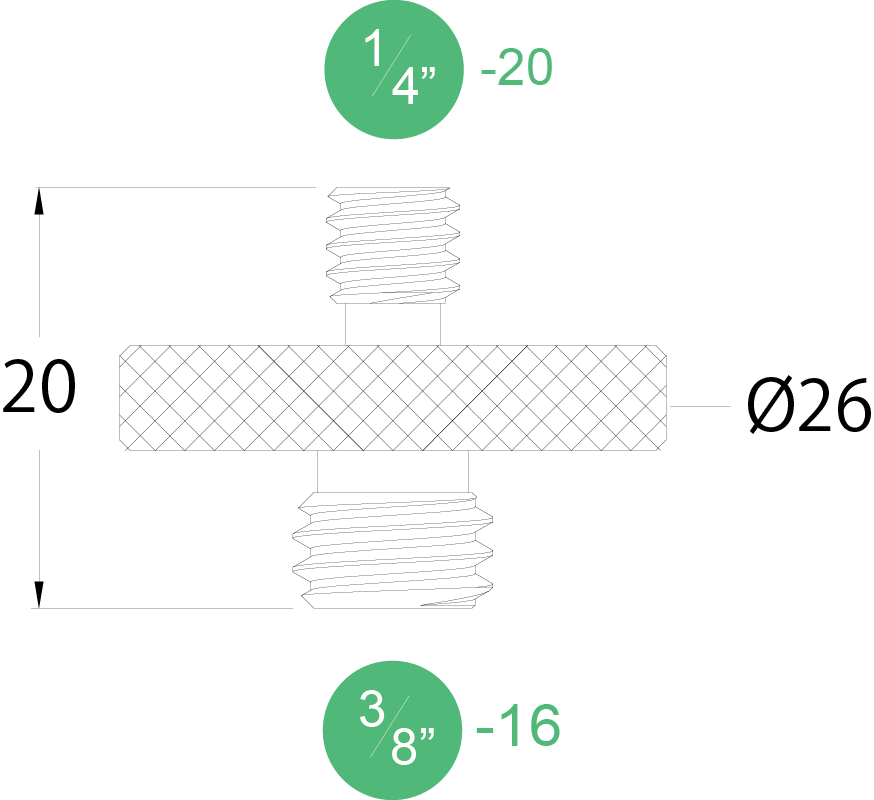 Двойной адаптер с наружной резьбой 3/8” и 1/4”, диаметр площадки 26 мм.