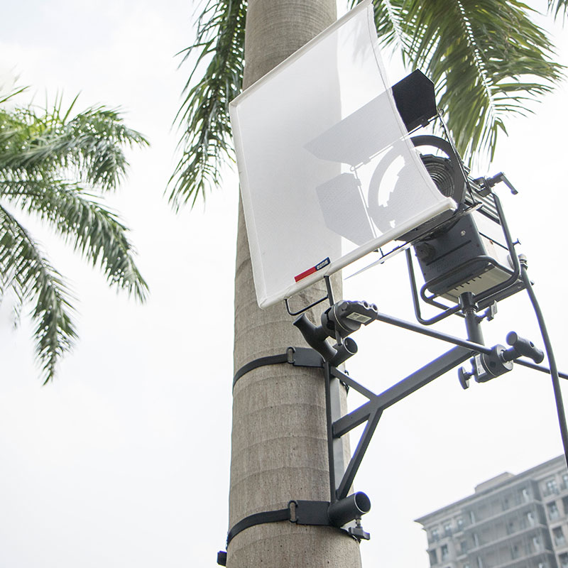 Кронштейн с втулками 28 мм и штифтом 16 мм позволяет прикрепить осветители к уличному фонарю, дереву, столбу и т.д. с помощью ремня с храповиком (входит в комплект поставки).