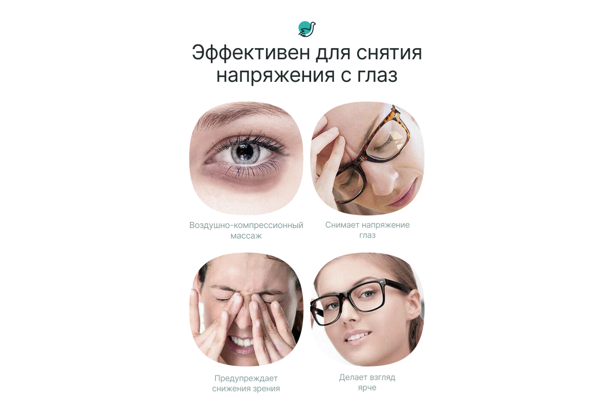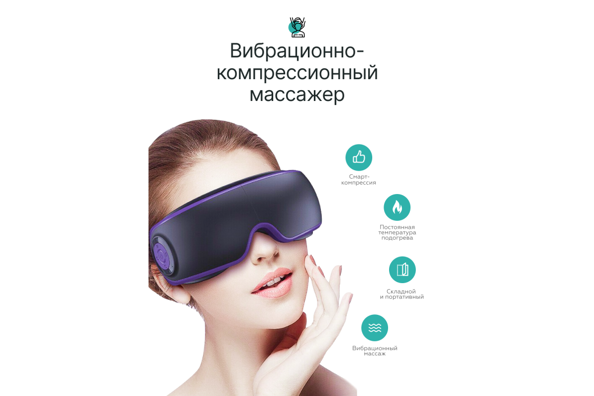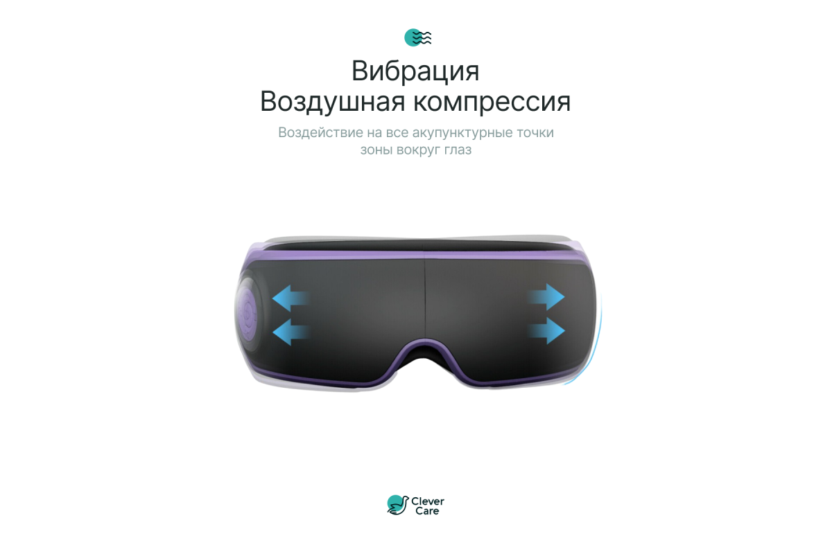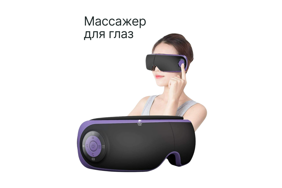 Портативный электрический массажер для глаз CleverCare с функцией воздушно-компрессионного акупунктурного массажа с подогревом и встроенной музыкой незаменим для людей, кто много времени проводит перед монитором компьютера, либо любого гаджета со световым экраном. Воздушно-компрессионный акупунктурный массаж области вокруг глаз активируют зрительный нерв, помогает снимать усталость, отеки и боль, улучшает микроциркуляцию, способствует общему тонусу кожи в этой области. Вибрационный массаж действует позитивно на зрение, также помогает снять головные боли и общую усталость организма. Подогрев усиливает терапевтическое воздействие, способствуя большему расслаблению, а музыкальное сопровождение сделает процедуру намного приятнее, дополнив ее аудио терапией. Массажер оснащен разъемом Mini-Jack, для прослушивания музыки через наушники. Пользователи оценят интуитивно понятное управление, высокое качество исполнения, стильный дизайн, и, самое главное – высокую эффективность массажа.