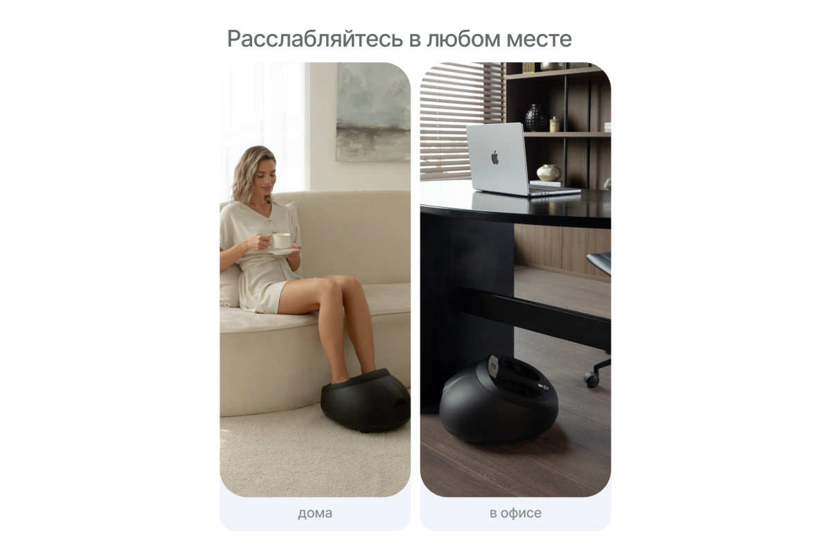 Массажер для ног URBANFIT Clever Care Гармония с пультом ДУ - многофункциональный гаджет, который поможет восстановить силы и облегчить боль в ногах. Работа устройства основана на техниках шиацу и гуаша. Массажные ролики и валики разработаны с учетом анатомии стоп, а аэро-подушечки усиливают воздействие на биологически активные точки. Функция нагрева подарит дополнительное расслабление. Массажер обладает 6 временными режимами, 5 уровнями силы массажа, 4 предустановленными режимами. Настройте массажер под свои предпочтения и наслаждайтесь.