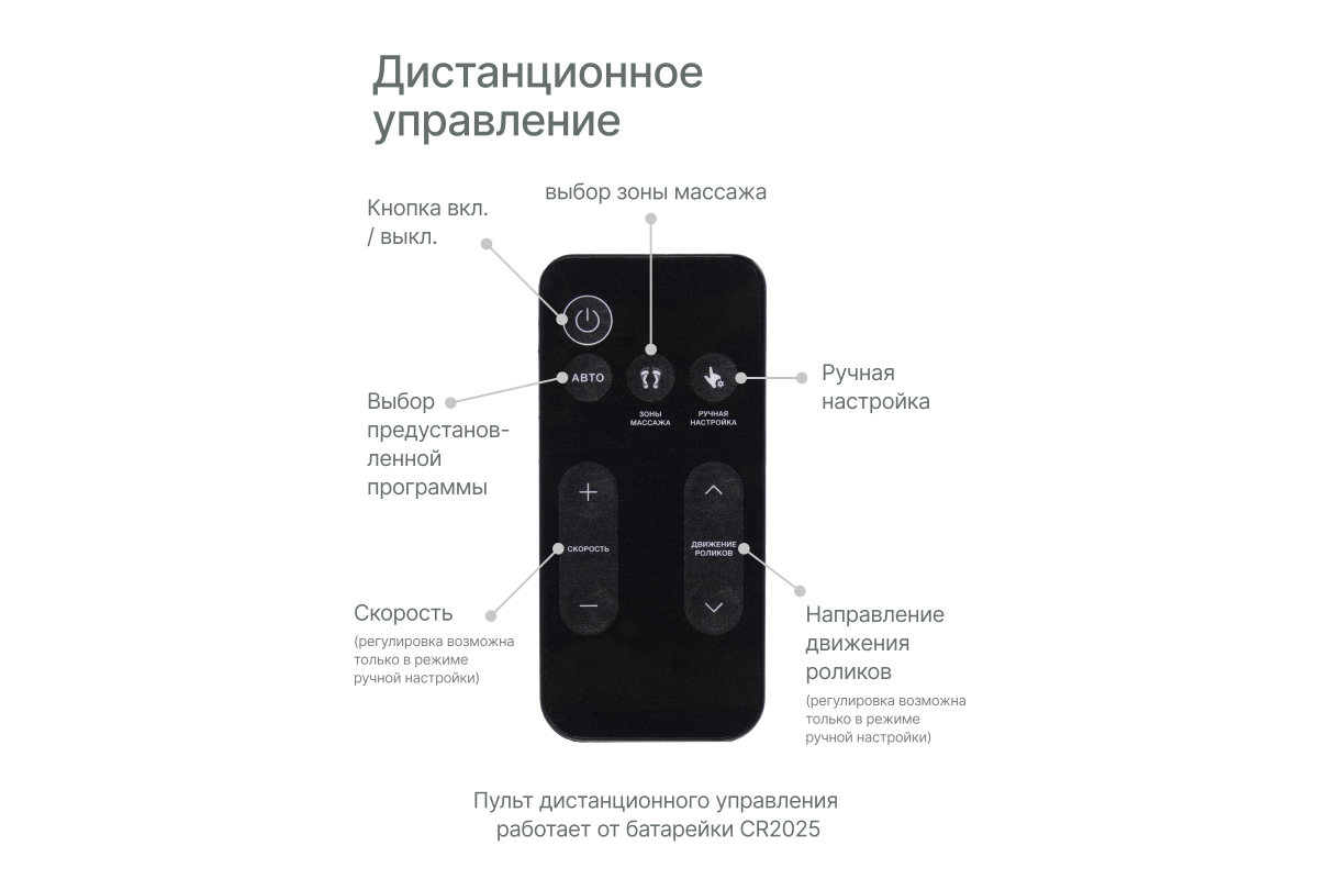 Массажер прост в применении, имеет 4 встроенные программы, а также ручное управление для выбора оптимальной скорости и направления воздействия. Для удобства пользователя в комплекте есть пульт дистанционного управления, подробная инструкция с описанием теории и практики рефлексотерапии. Регулярное использование массажера CleverCare принесет вам расслабление, улучшит общий тонус организма, избавит от болей и хронических заболеваний. Перед использованием необходимо внимательно изучить инструкцию! CleverCare–feel your beauty!