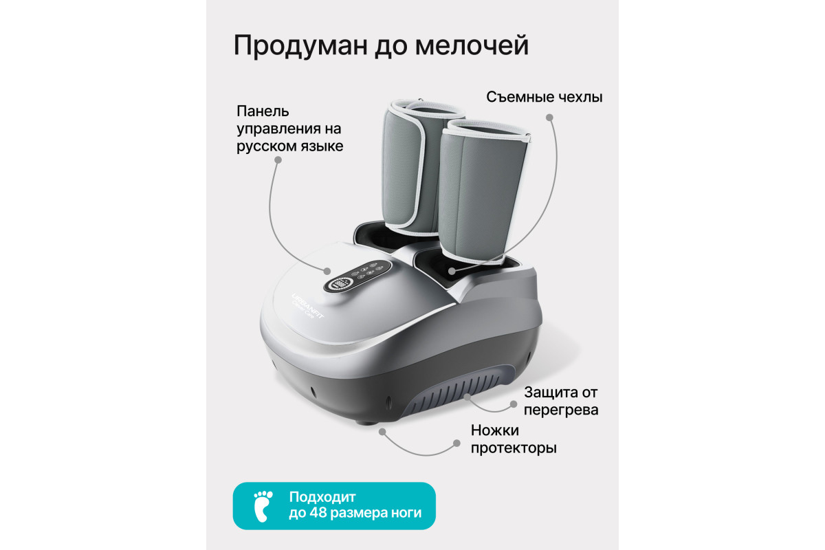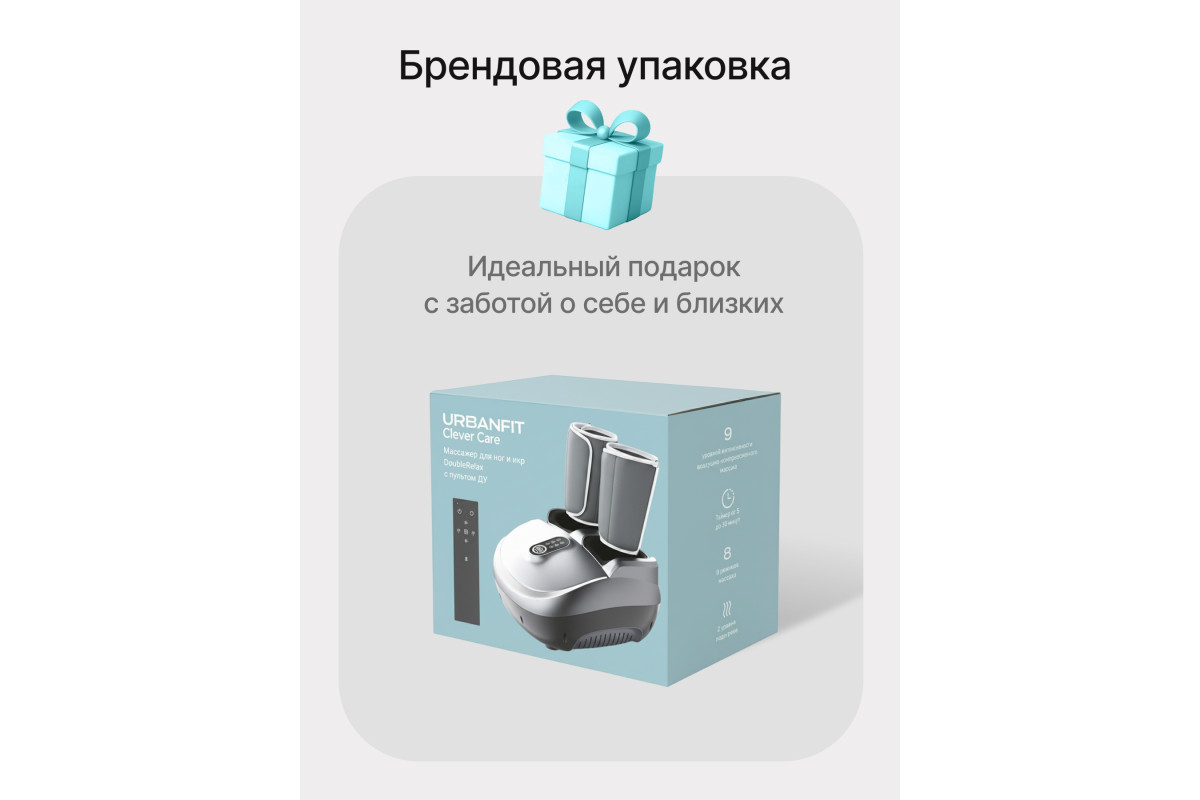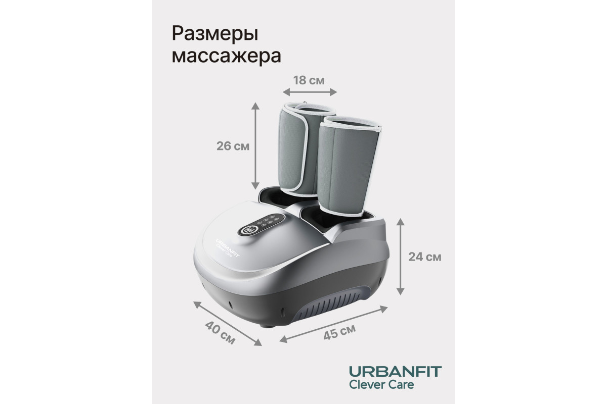 Массажер для ног и икр URBANFIT Clever Care DoubleRelax с пультом ДУ - массажер с компрессионным эффектом, функциями скребкового, роликового и разминающего массажей.