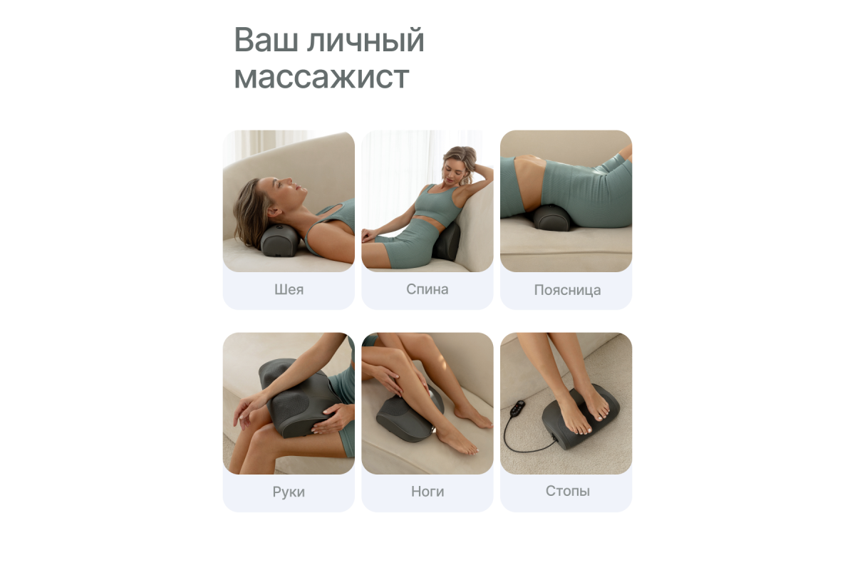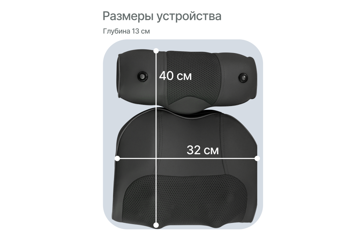 Масажер для спины электрический подойдёт для дома, офиса или автомобиля. Высококачественные материалы — искусственная кожа, прочный ABS-пластик и дышащая сетка — обеспечивают комфорт и долговечность.