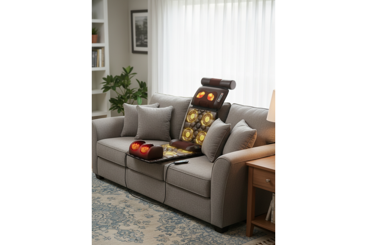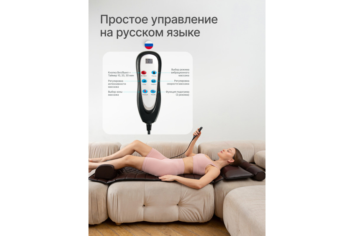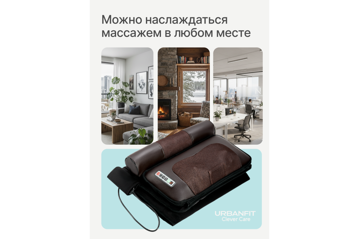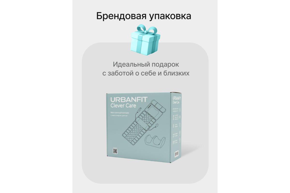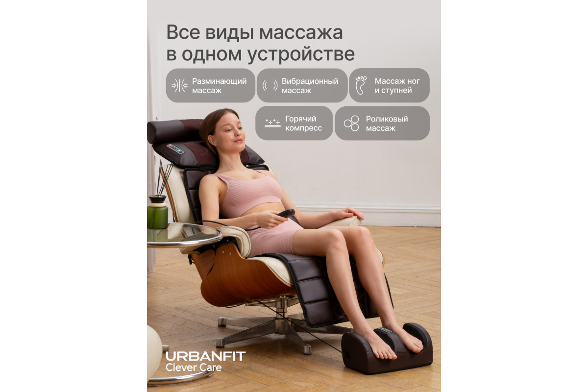 Массажный матрас Фокус с массажером для ног URBANFIT CLEVER CARE-идеальное решение для массажа дома. Максимальный комфорт от массажа создается в положении лежа, когда мышцы абсолютно расслаблены и находятся в состоянии покоя. Матрас выдерживает до 150кг. Электрический матрас с подогревом оснащен множествами режимами, с помощью которых, Вы можете собрать идеальную комбинацию для массажа. В целом, это массажер 5в1 для каждой части тела: для шеи, плеч, ног, спины и поясницы. Его уникальность заключается в том, что каждую массажную часть можно использовать, как вместе, так и по отдельности.