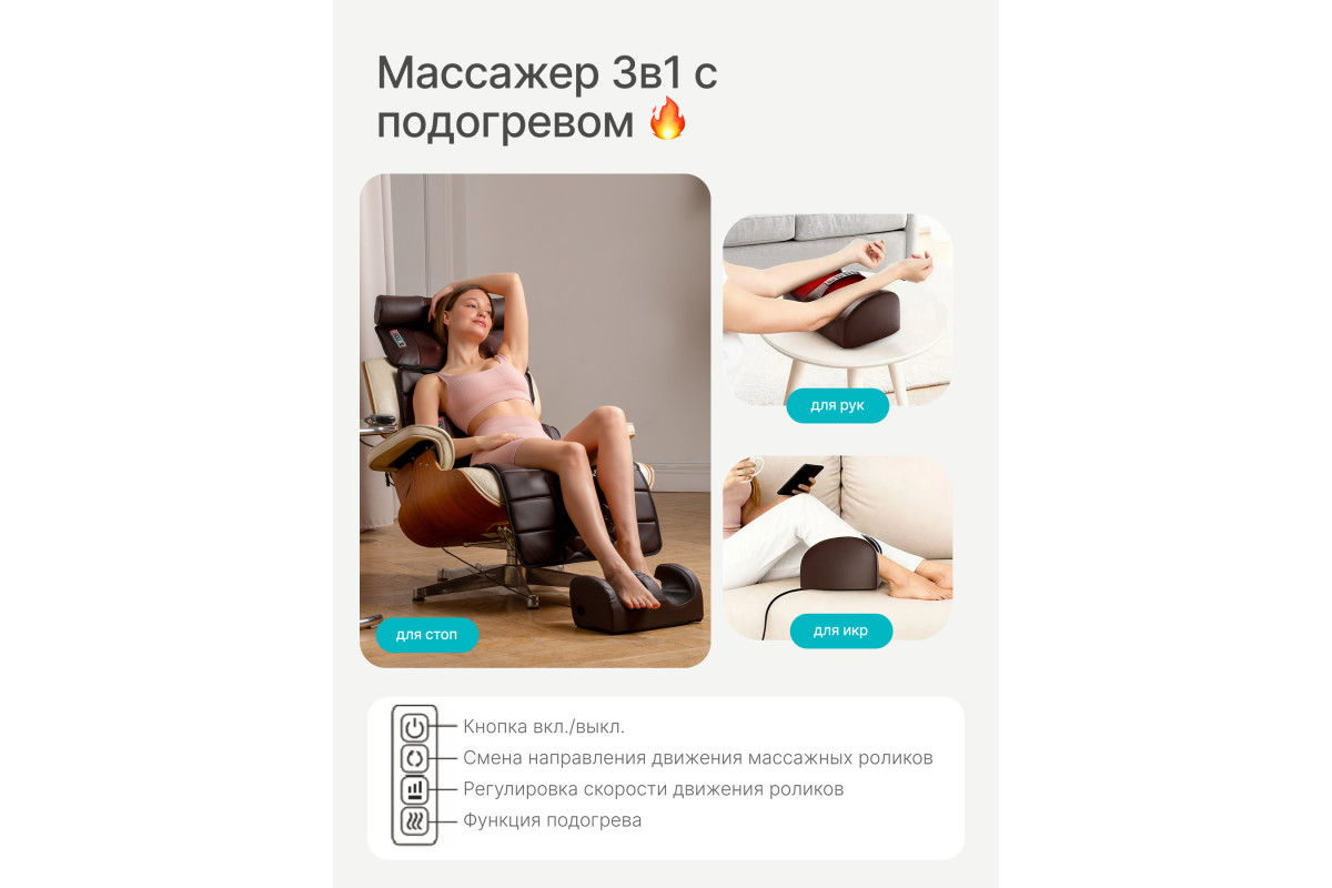 вибрация, роликовый массаж, вращающиеся массажные головки