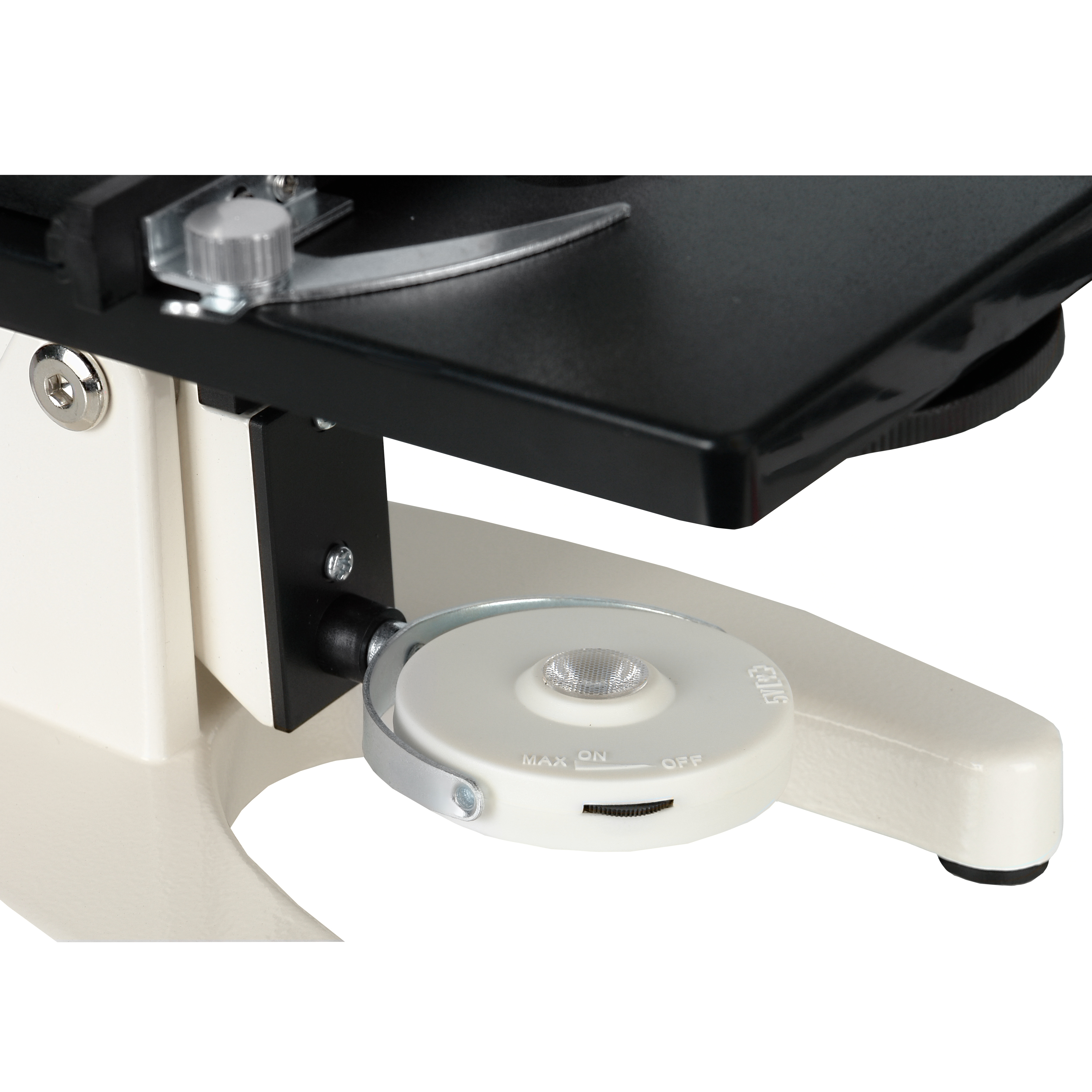 Необходимый вид освещения можно выбрать исходя из условий наблюдений, для этого просто нужно повернуть осветитель. При наклоне штатива с окулярным тубусом на комфортный для наблюдений угол, также наклоняется и осветитель микроскопа, поэтому никаких дополнительных настроек не требуется.