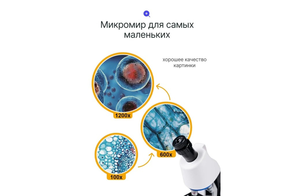 Детский микроскоп в кейсе Prolike поможет организовать собственную мини-лабораторию в любом месте. Портативный микроскоп - это отличный подарок, который поможет провести время не только весело, но и с пользой. В комплект входят все необходимые принадлежности для опытов юного биолога. Детский микроскоп с увеличением 100x, 600x и 1200x поможет рассмотреть мельчайшие детали, узнать строение клеток, научиться отличать микроорганизмы и многое другое. Также в набор входят 5 карточек с подробным описанием интересных опытов, а все предметы выполнены из качественного пластика, что обеспечивает безопасность во время использования. Портативный микроскоп и все детали набора помещаются в прочный кейс, который при желании можно трансформировать в столик. Микроскоп для детей от Prolike работает от батареек «AA» 1,5В (2шт) благодаря чему, исследовать микромир можно на прогулке, на даче, в школе и даже в путешествиях!