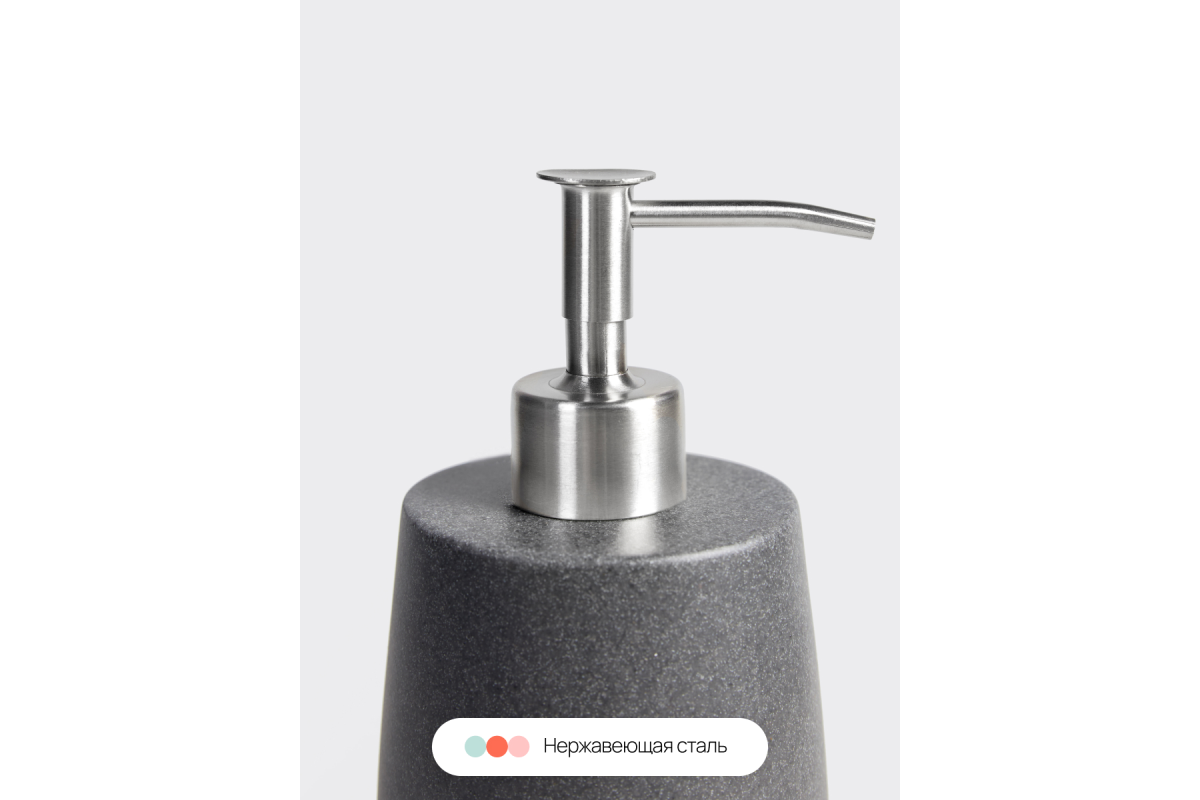 Аксессуары для ванной комнаты выполнены из современного инновационного материала полирезина, который в отличии от других материалов устойчив к влажности, внешним воздействиям, не бьется. Помпа дозатора изготовлена из высококачественной нержавеющей стали 402 SS. Все аксессуары для ванной набор имеют силиконовые антискользящие ножки накладки, которые не позволяют предметам скользить по влажной или мокрой поверхности. Матовые, тактильно приятная принадлежности для ванной выглядят дорого и стильно. Такой набор в ванную комнату красив, практичен и прослужит долгие годы.