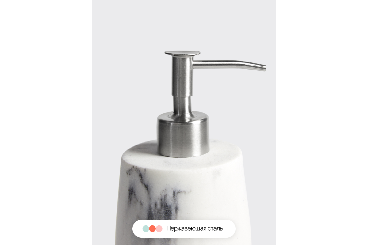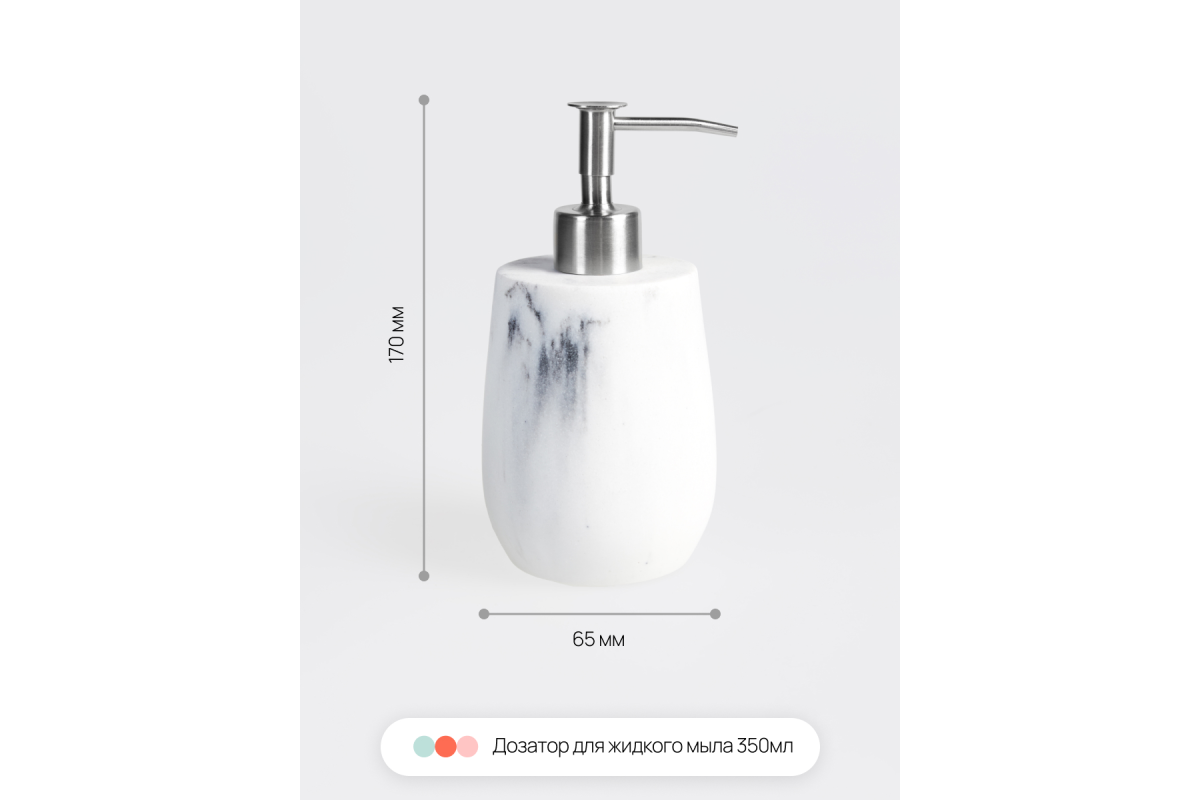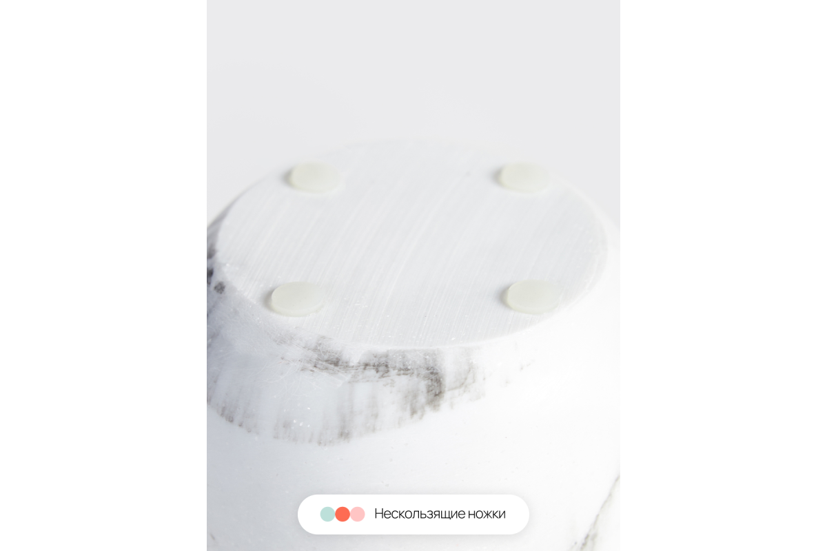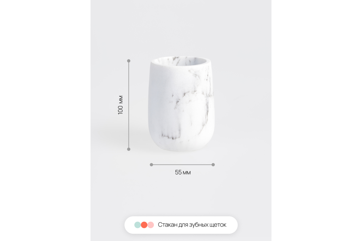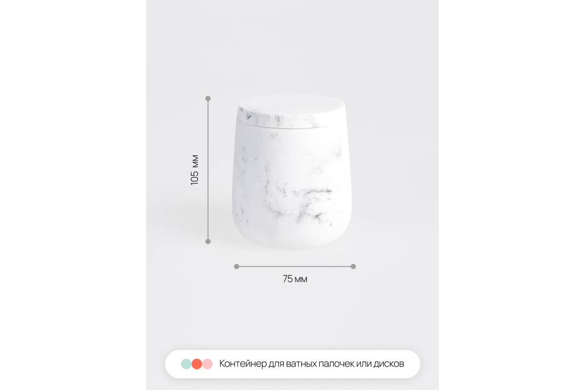 Набор аксессуаров для ванной Marble мрамор состоит из четырех предметов: дозатор для жидкого мыла, стакан для зубных щеток, контейнер органайзер для ватных палочек или дисков с крышкой, а также поднос, который можно использовать как подставку для набора в ванную, так и для любой косметики, полотенец для лица, свечей и т.д.
