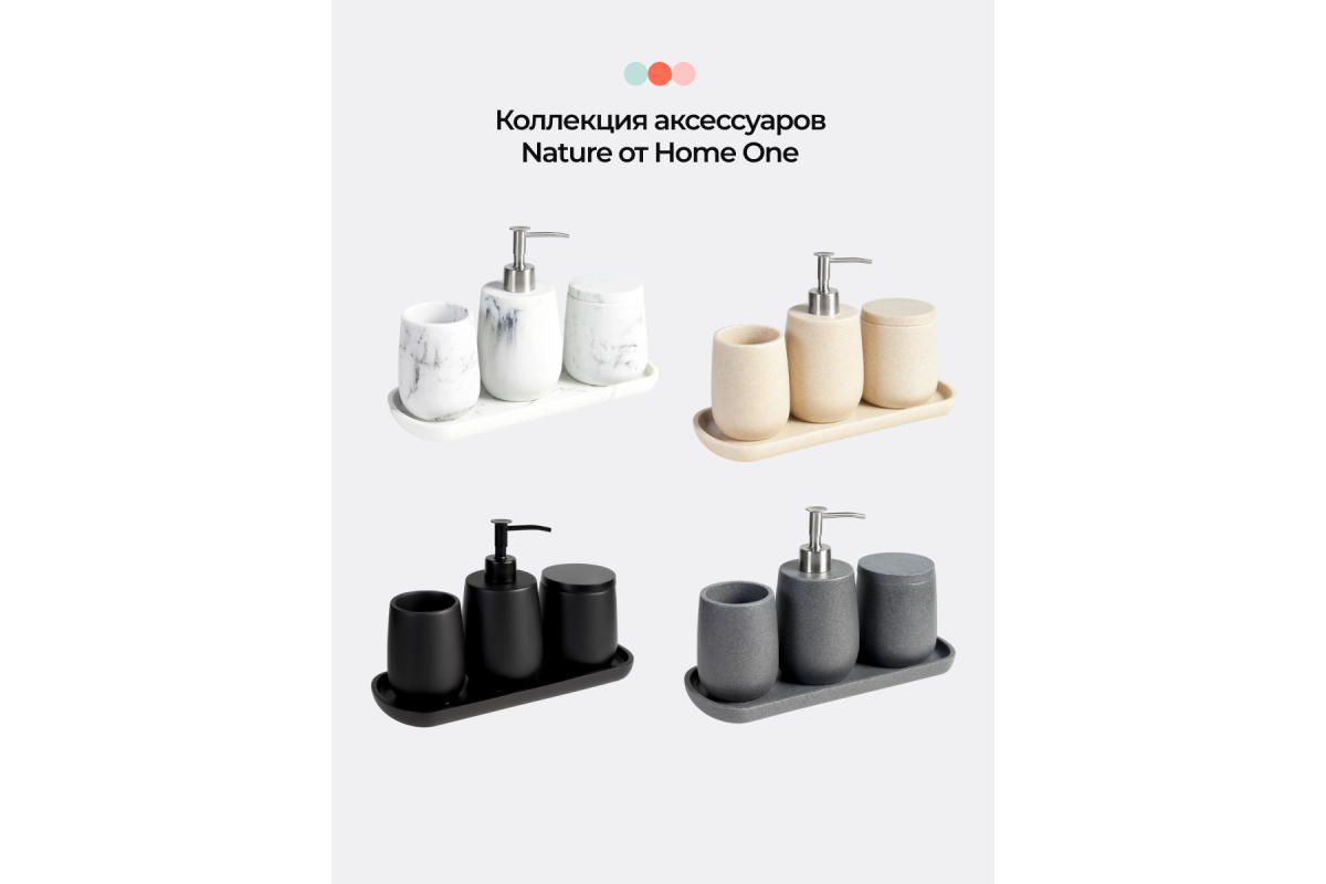 Набор аксессуаров для ванной комнаты серии Nature от ""Home One"" это аксессуары для ванной, выполненные из высококачественных материалов в лаконичном дизайне и цветах, имитирующих природный камень. Такой набор для ванны будет уместен в ванной комнате любого стиля, он подчеркнет вкус обитателей квартиры и подарит не только красоту, но и поможет организовать порядок в ванной комнате. Имитация природного камня очень актуальна в современном дизайне ванных комнат.