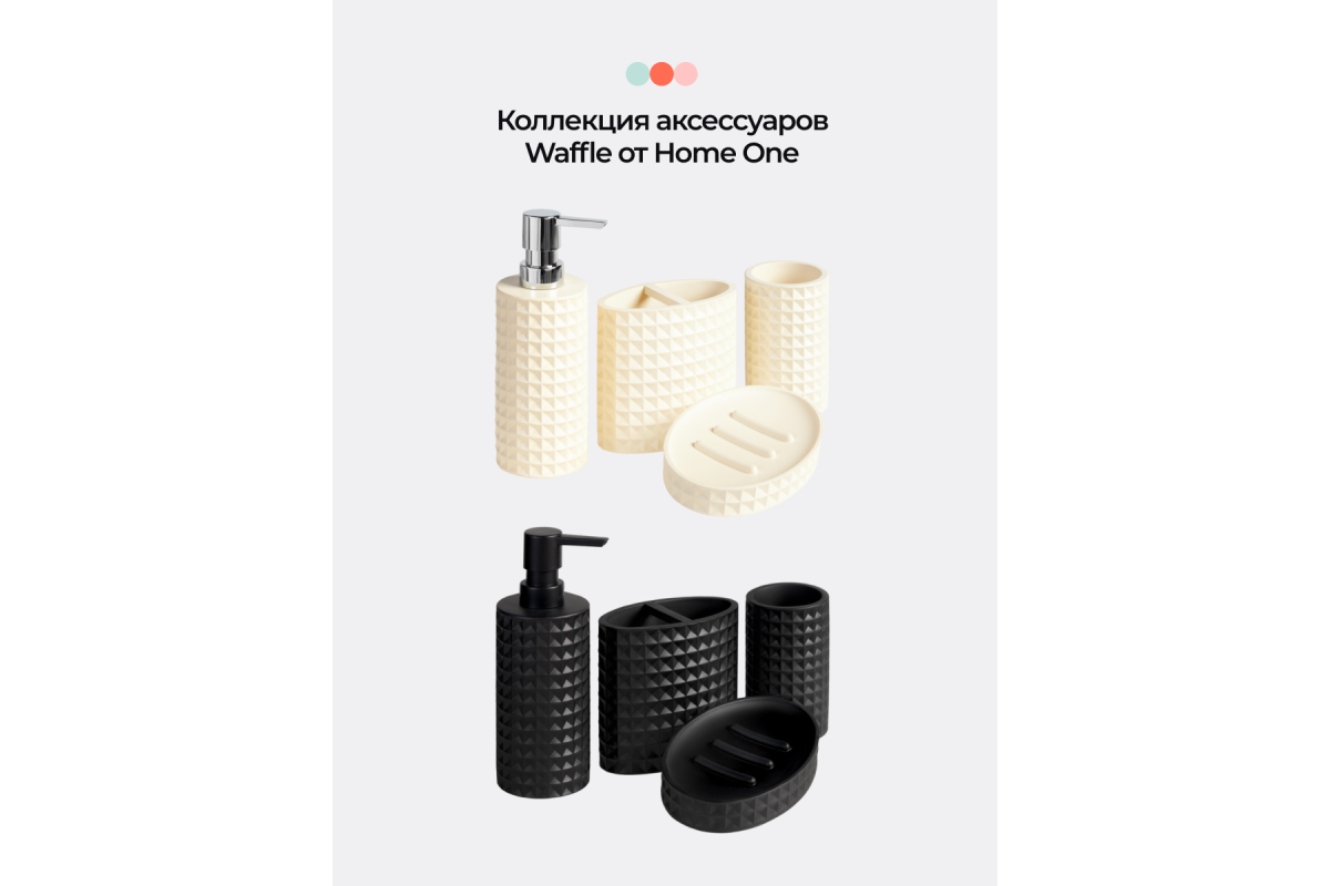 Набор аксессуаров для ванной комнаты серии Waffle от ""Home One"" это аксессуары для ванной, выполненные из высококачественных материалов в лаконичном дизайне и с фактурой, имитирующей мягчайшее вафельное полотно. Такой набор для ванны будет уместен в ванной комнате любого стиля, он подчеркнет вкус обитателей квартиры и подарит не только красоту, но и поможет организовать порядок в ванной комнате.