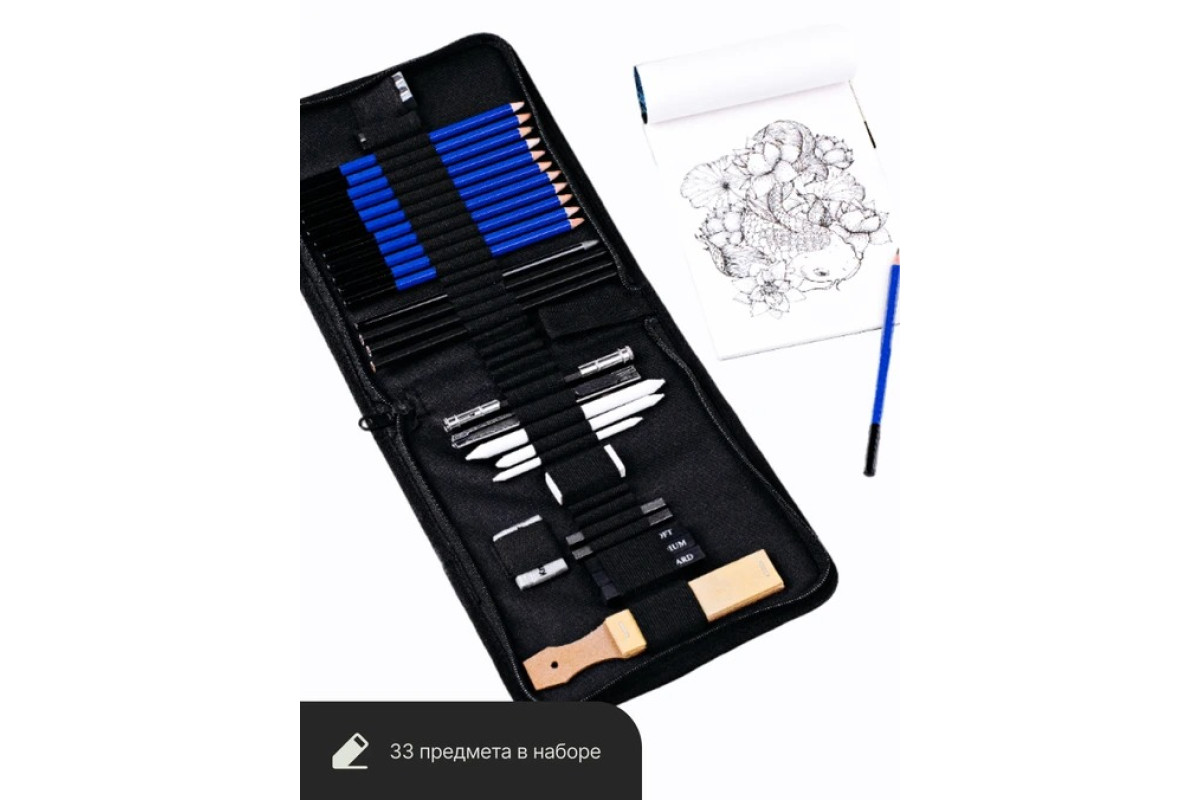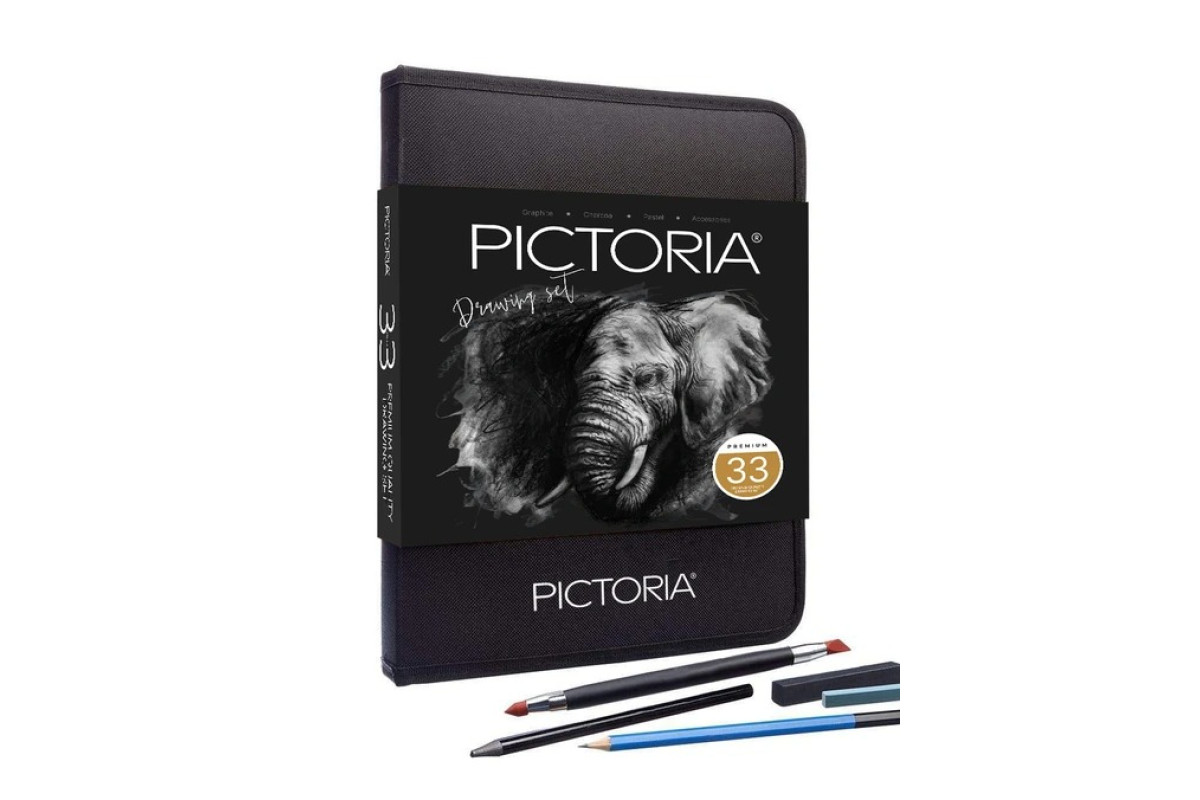 Набор карандашей для скетчинга PICTORIA из 33 предметов позволит Вам рисовать лучше, чем когда-либо. Карандаши и все предметы упакованы в нейлоновый кейс, внутри которого есть дополнительное место для хранения. Кейс для карандашей надежно защитит набор, его легко взять с собой куда угодно, а также можно использовать как подложку во время рисования.