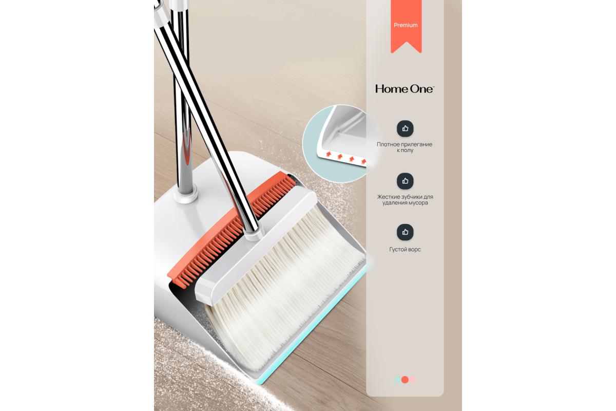 Щетка и совок для уборки Home One - универсальный хозяйственный набор предназначенный для быстрой и качественной уборки в доме. Совок и щетка на длинной ручке позволят Вам убираться не наклоняясь, снижая нагрузку на спину и суставы. Насадка щетка для уборки выполнена из густой и прочной щетины, которая очистит даже труднодоступные места, не повреждая напольные покрытия. Ручной совок пластиковый оснащен жесткими зубчиками для быстрой очистки метлы. Совок ручной оснащен резиновой кромкой, за счет чего более плотно прилегает к поверхности и позволяет собирать мелкий мусор. Веник с совком прост в использовании и не требует особого ухода. Совок и щетка для уборки компактны и не займут много места при хранении. В комплекте идет также водосгон для мытья стекол и кафельных поверхностей без разводов. Веник с совком на длинной ручке идеально подойдет для уборки дома, квартир, офисов и даже парикмахерских. Набор для уборки Home One незаменимый помощник!