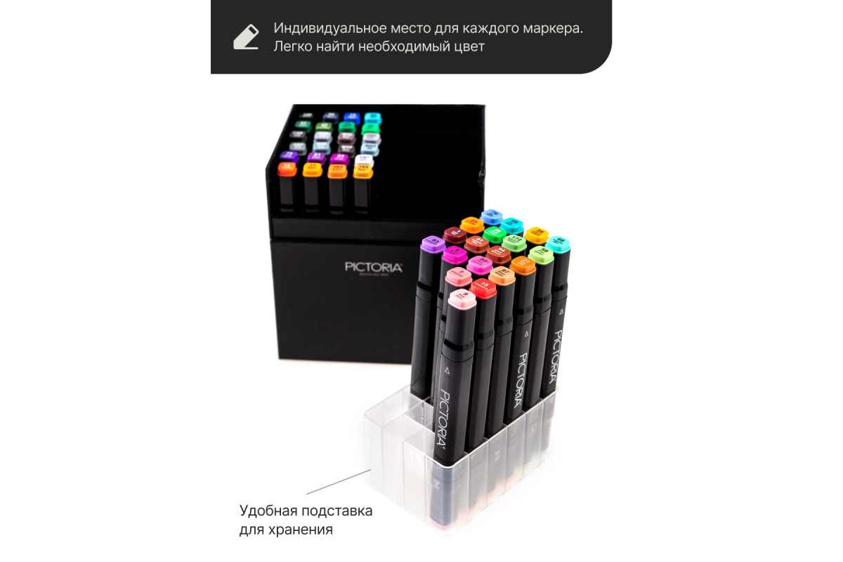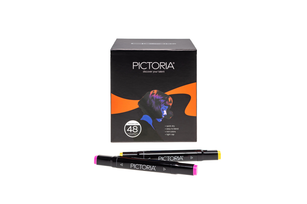 Набор двусторонних маркеров Pictoria станет незаменимым помощником для профессиональных художников и любителей творчества. Широкая и яркая палитра поможет разнообразить рисунки, скетчи, комиксы и любые другие изображения. Благодаря двум разным видам наконечников, можно создавать линии разной толщины, закрашивать большие площади, смешивать цвета менять угол и давление штрихов.