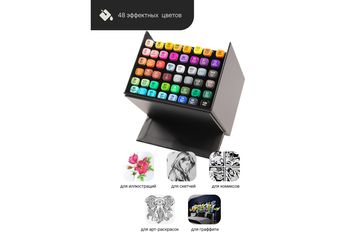 набор двусторонних спиртовых маркеров 48 шт.