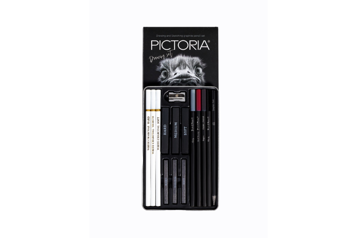 Набор графитовых угольных карандашей и материалов Pictoria - это отличный выбор для тех, кто увлекается рисованием, скетчингом и художественным творчеством. В наборе содержатся угольные, пастельные и графитовые карандаши, которые позволят создавать красивые и оригинальные рисунки в черно-белой технике.